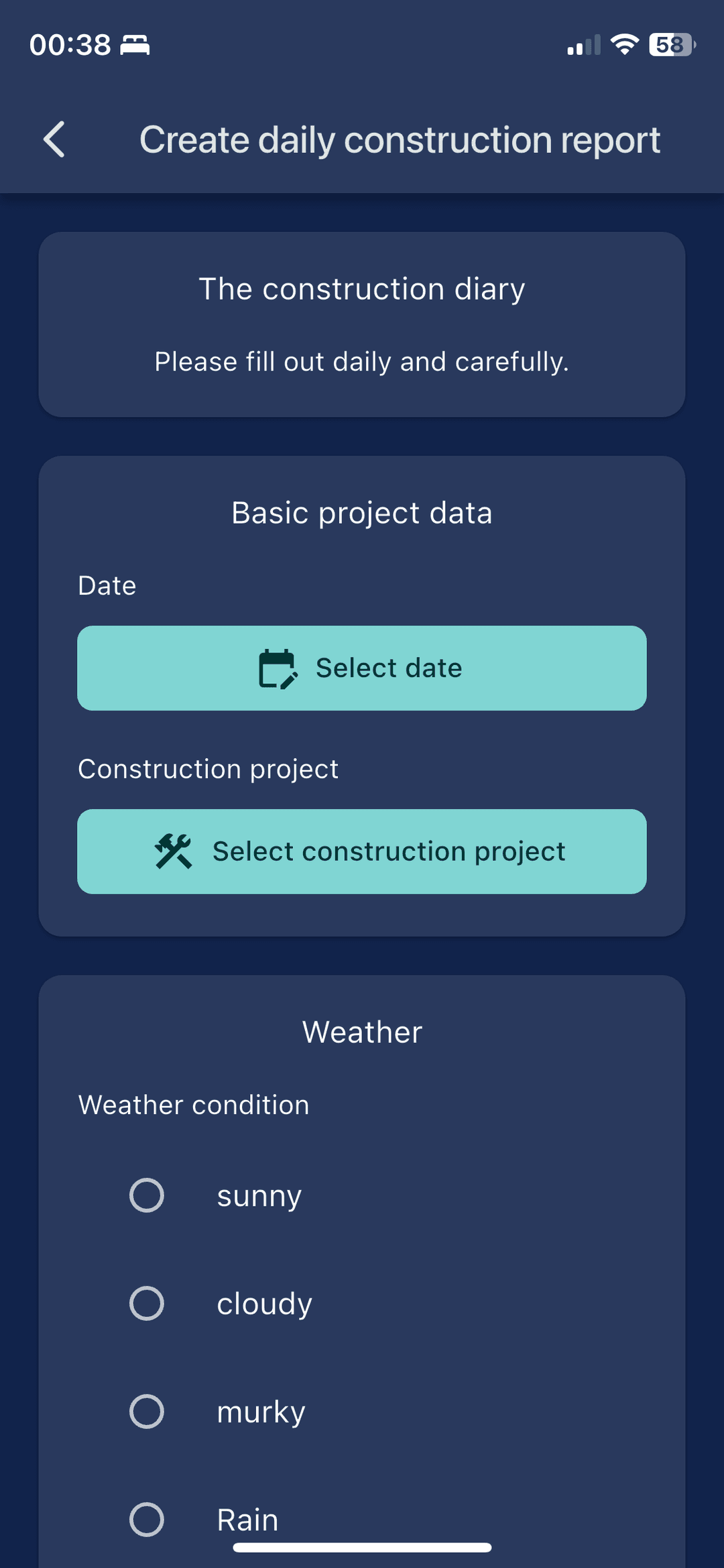 In the MVP phase, the results of the user tests were evaluated, and the form was further optimized for clarity, including improved translations. In addition, an interface to Google Sheets was implemented, where all construction diary entries are stored.